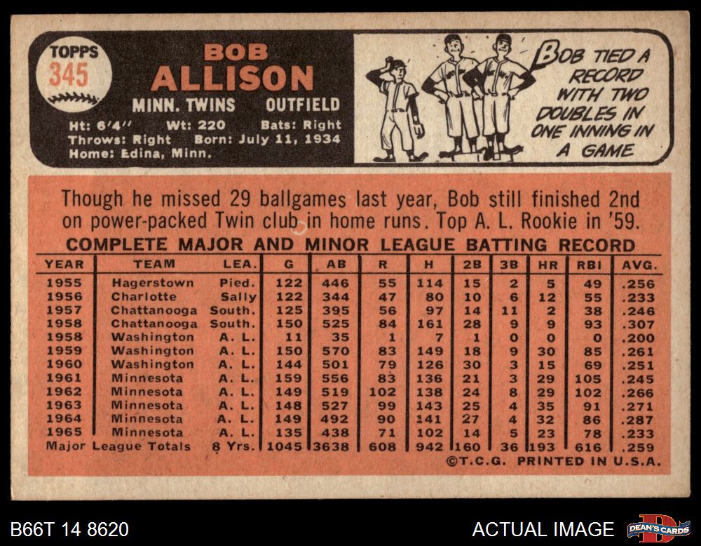 1966 Topps #345 Bob Allison 3.5 - VG+