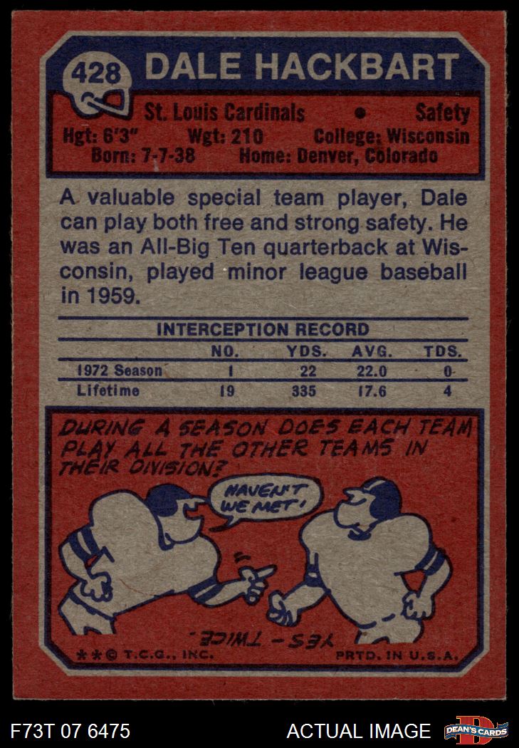 1973 Topps #428 Dale Hackbart 7 - NM