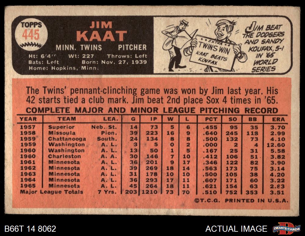 1966 Topps #445 Jim Kaat 1.5 - FAIR