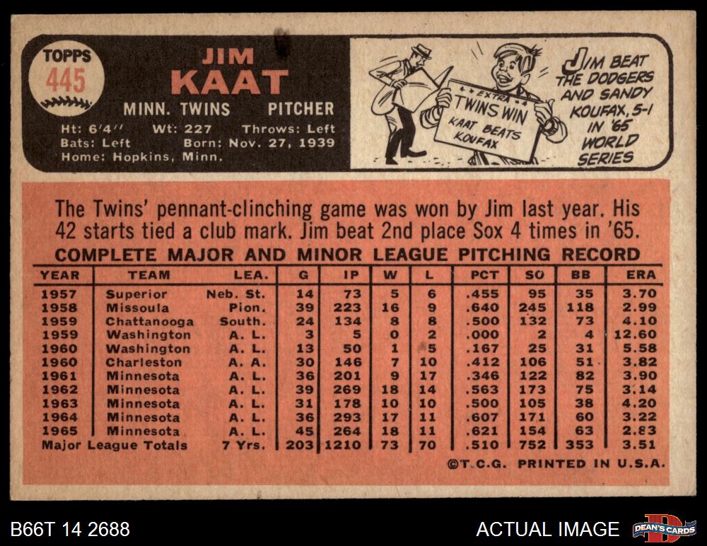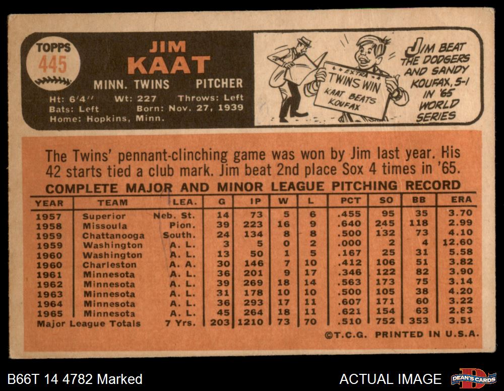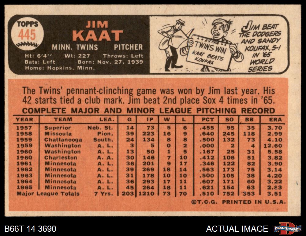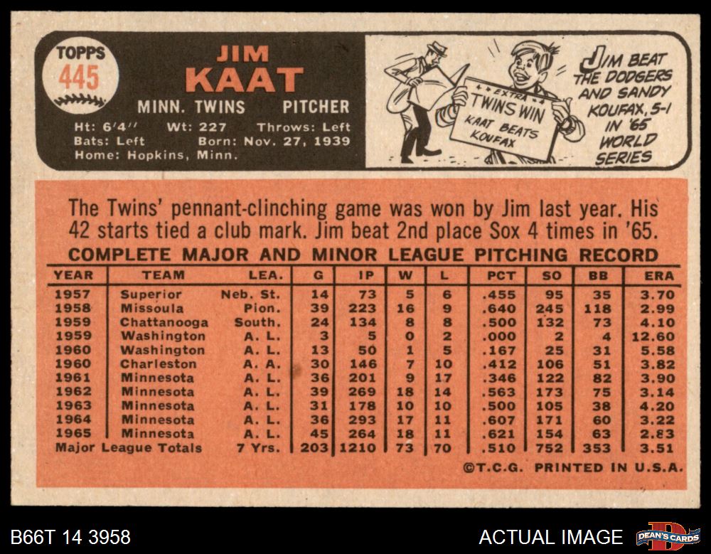 1966 Topps #445 Jim Kaat