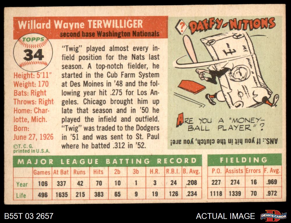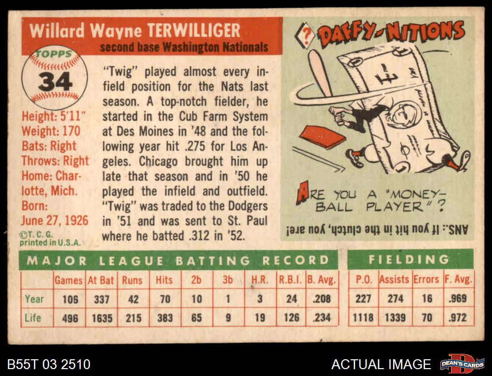 1955 Topps #34 Wayne Terwilliger 3 - VG