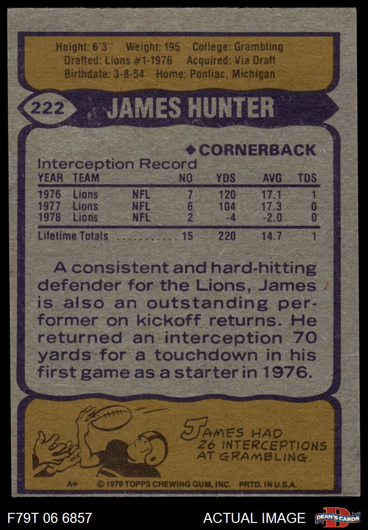 1979 Topps #222 James Hunter 3 - VG