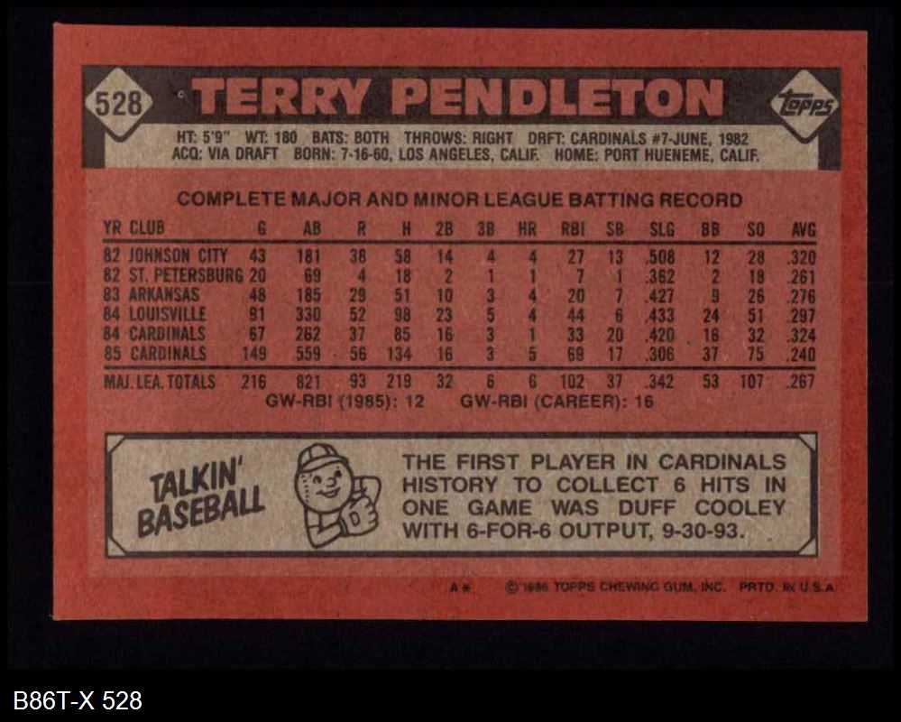 1986 Topps #528 Terry Pendleton 8 - NM/MT