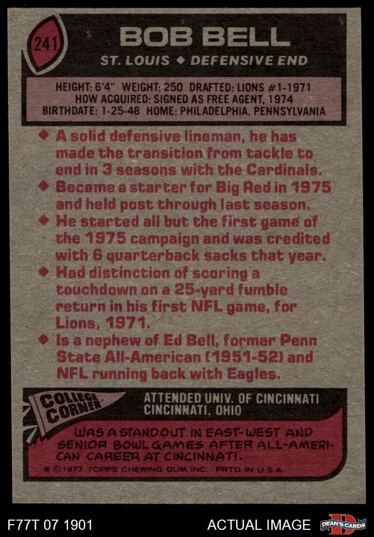 1977 Topps #241 Bob Bell