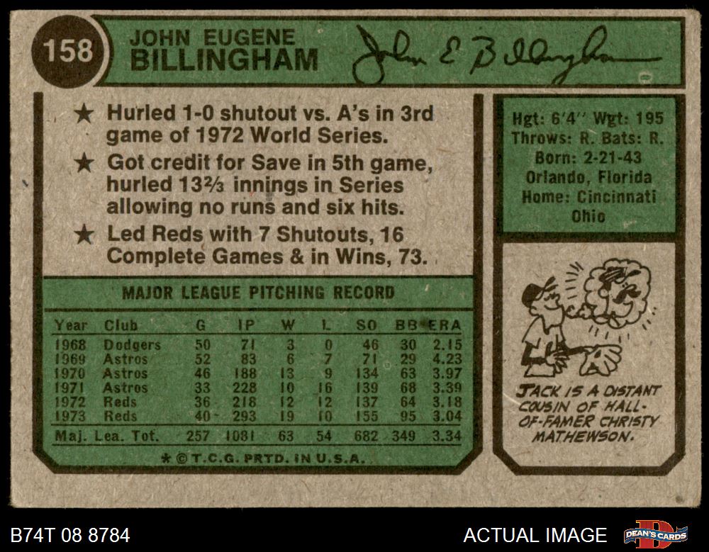 1974 Topps #158 Jack Billingham 2 - GOOD