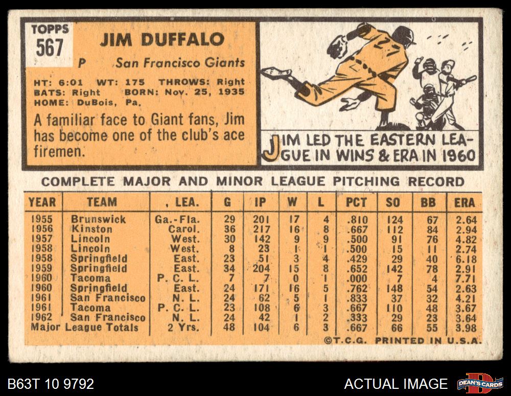 1963 Topps #567 xBLB Jim Duffalo 3 - VG