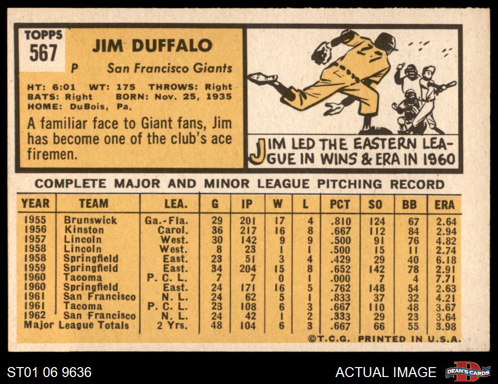 1963 Topps #567 xBLB Jim Duffalo 5 - EX