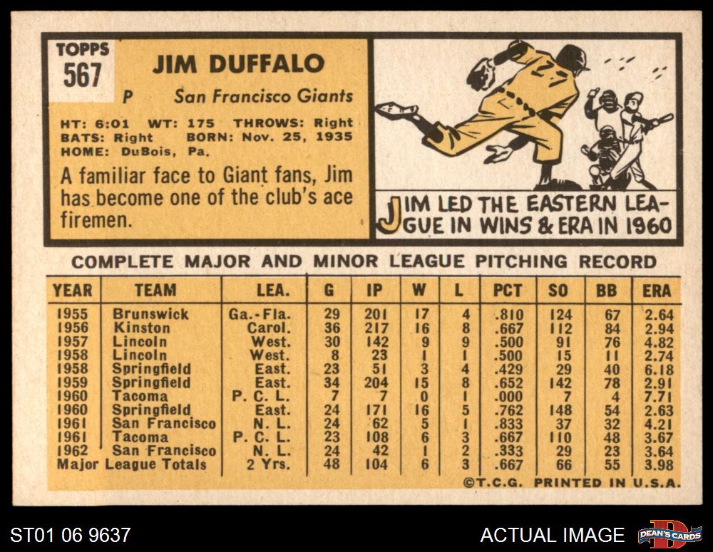 1963 Topps #567 xBLB Jim Duffalo 6 - EX/MT