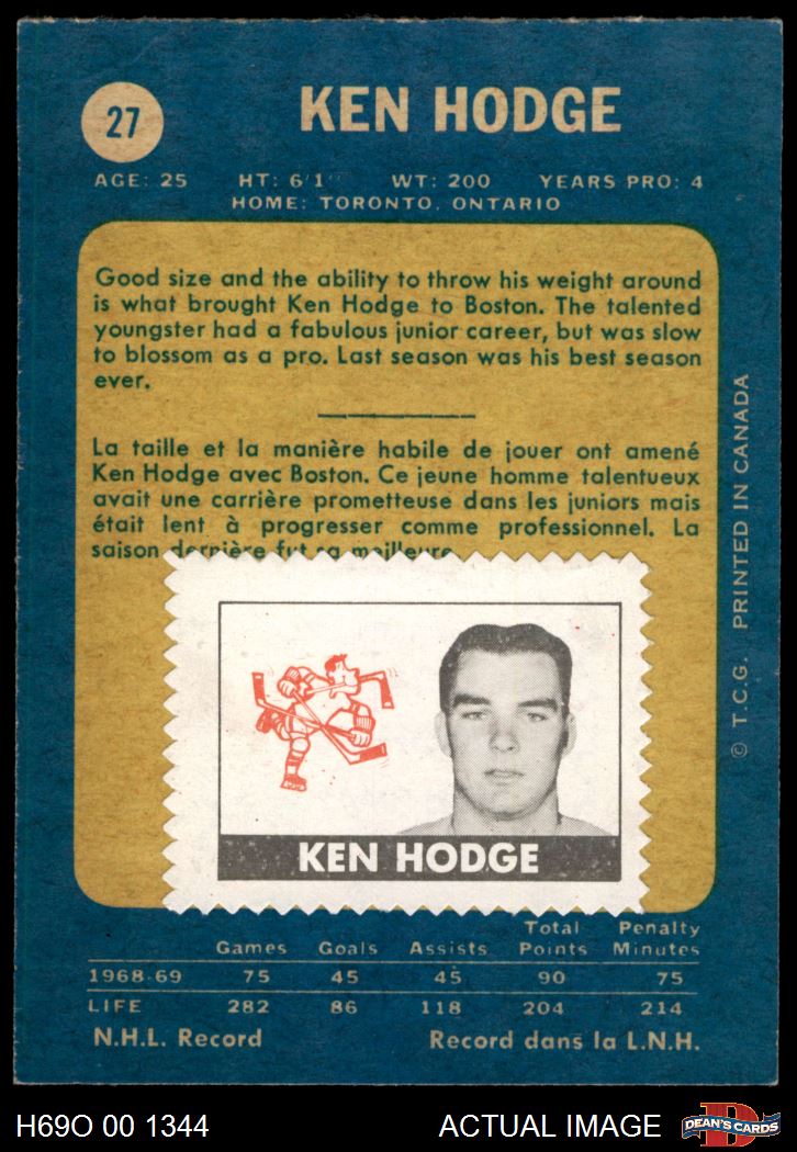 1969 O-Pee-Chee #27 Ken Hodge