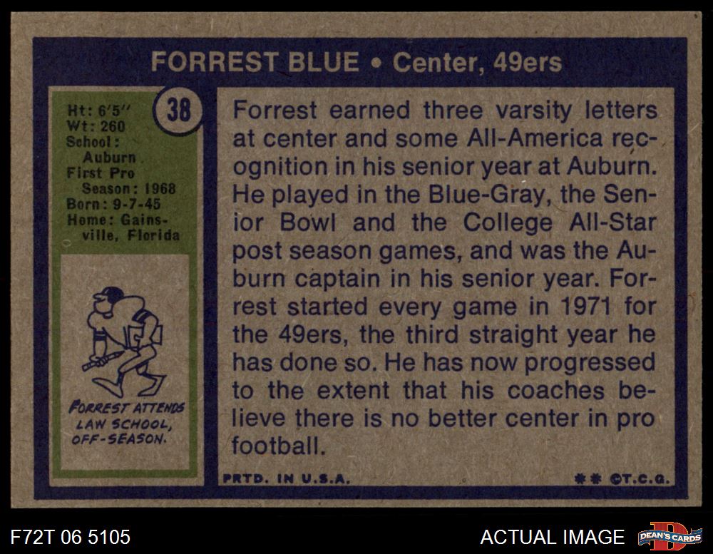 1972 Topps #38 Forrest Blue 6 - EX/MT
