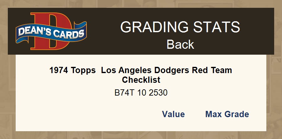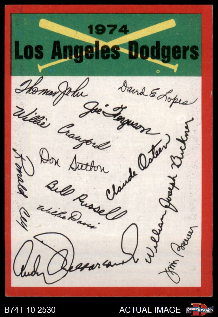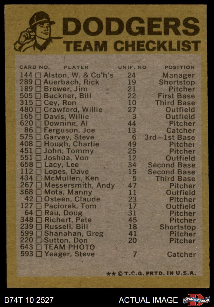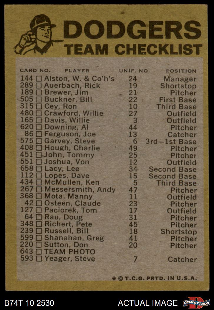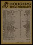 1974 Topps Los Angeles Dodgers Red Team Checklist 5 - EX