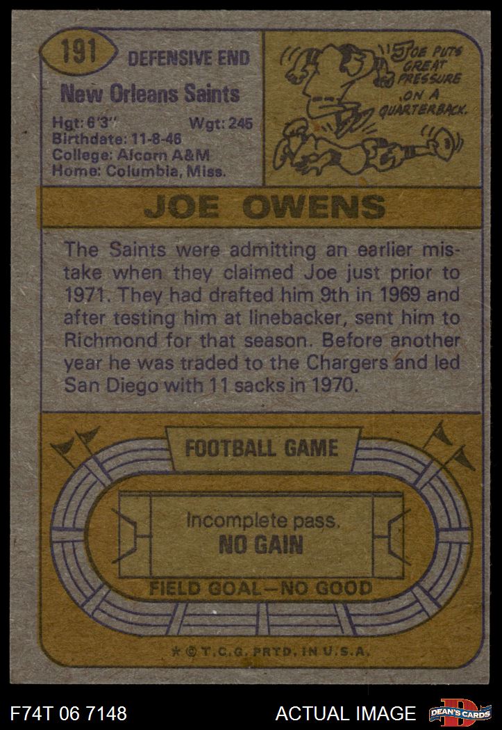 1974 Topps #191 Joe Owens