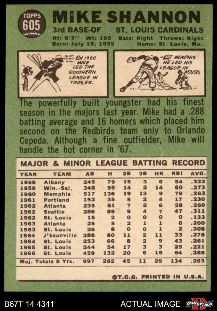 1967 Topps #605 Mike Shannon 6 - EX/MT