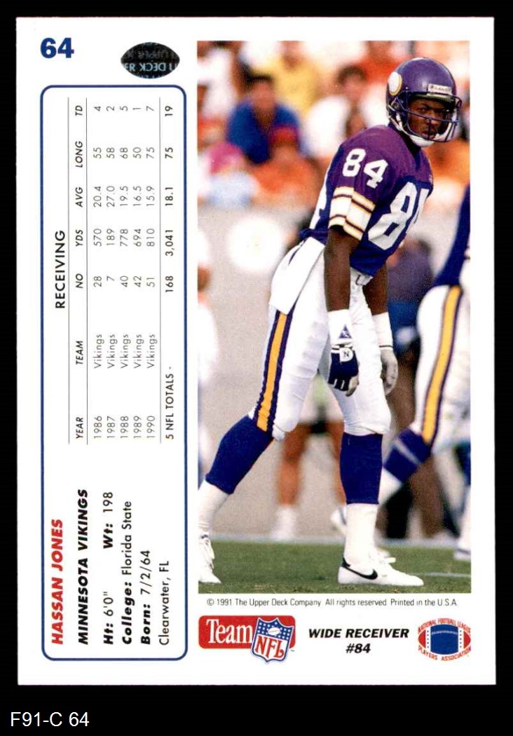 1991 Upper Deck #64 Hassan Jones 8 - NM/MT