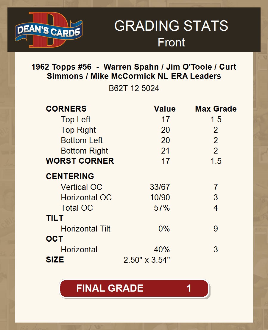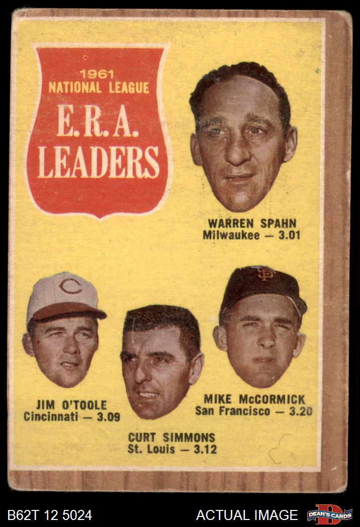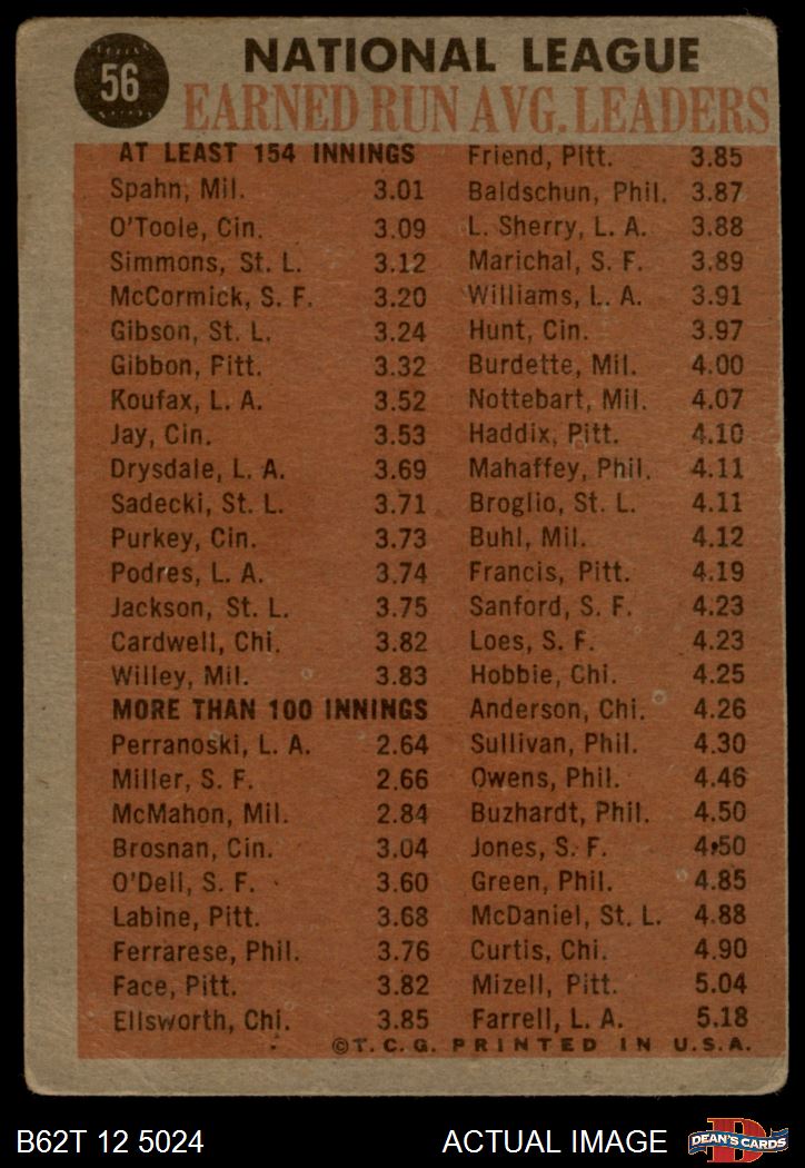 1962 Topps #56 NL ERA Leaders