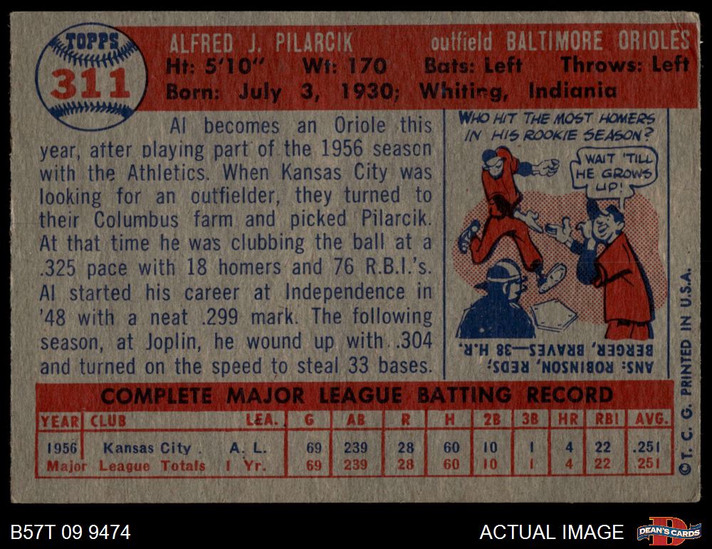 1957 Topps #311 Al Pilarcik 1 - POOR