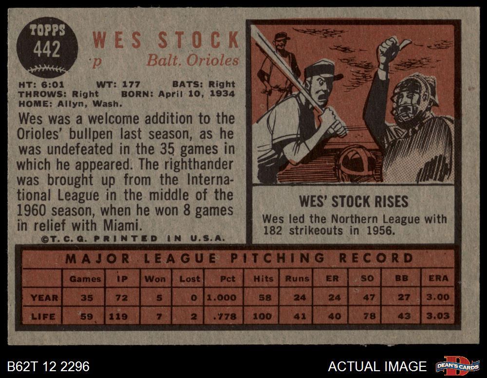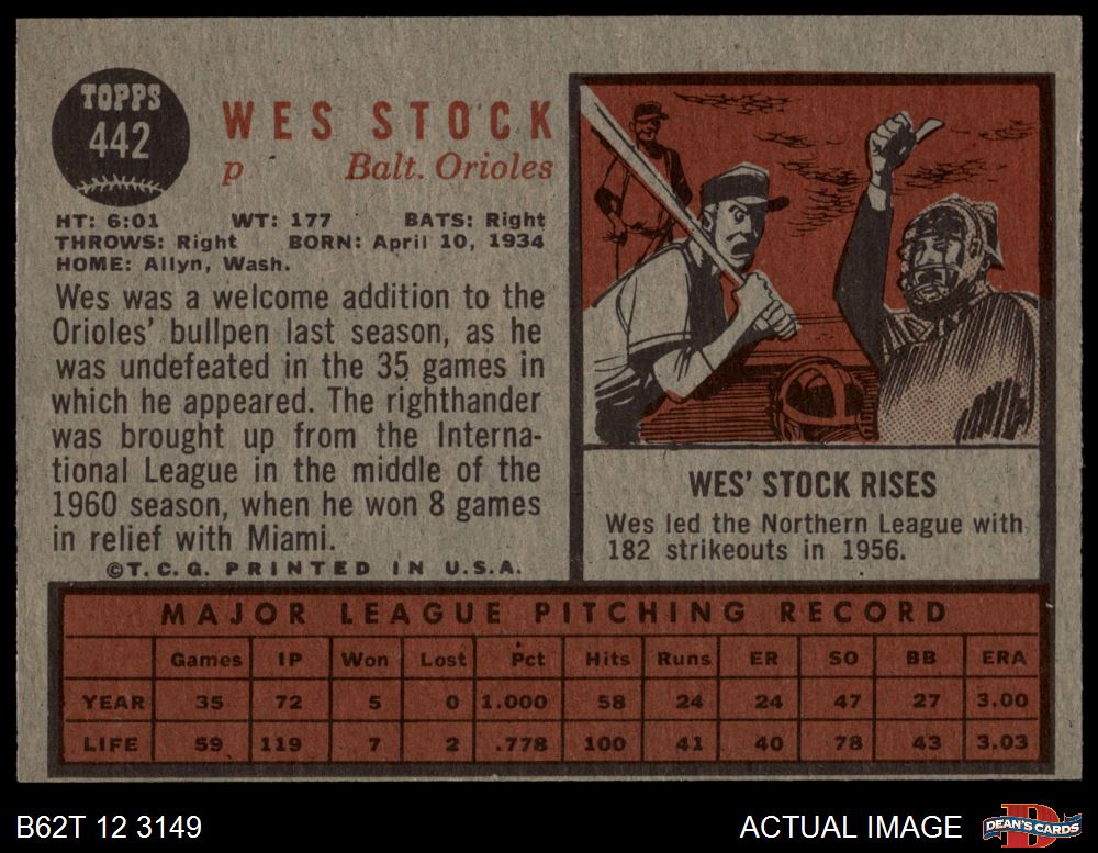 1962 Topps #442 Wes Stock 4 - VG/EX