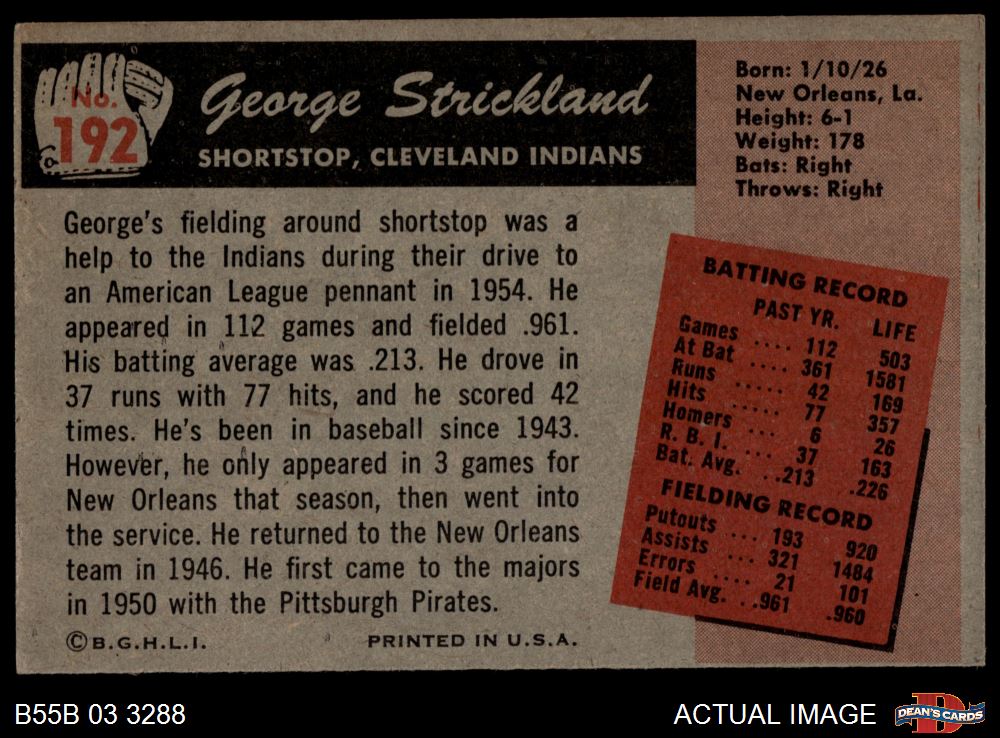 1955 Bowman #192 George Strickland 6 - EX/MT