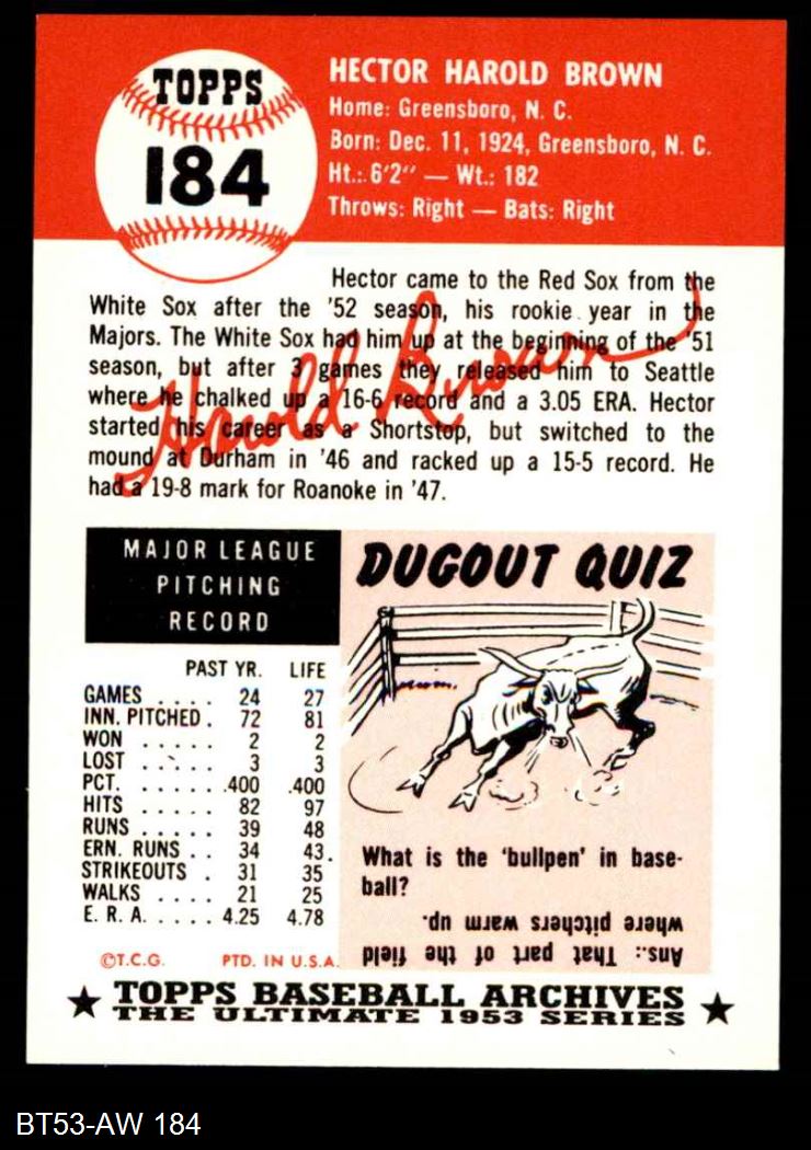 1953 Topps Archives #184 Hal Brown 8 - NM/MT