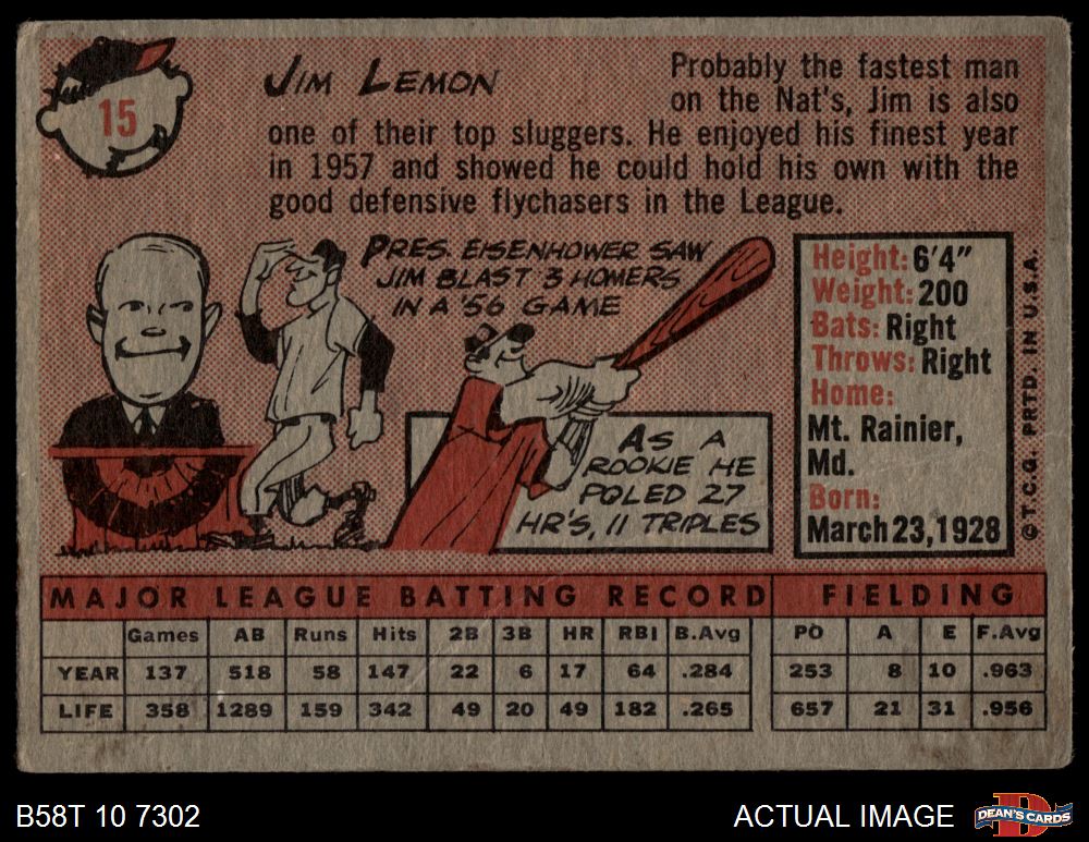 1958 Topps #15 Jim Lemon 1.5 - FAIR