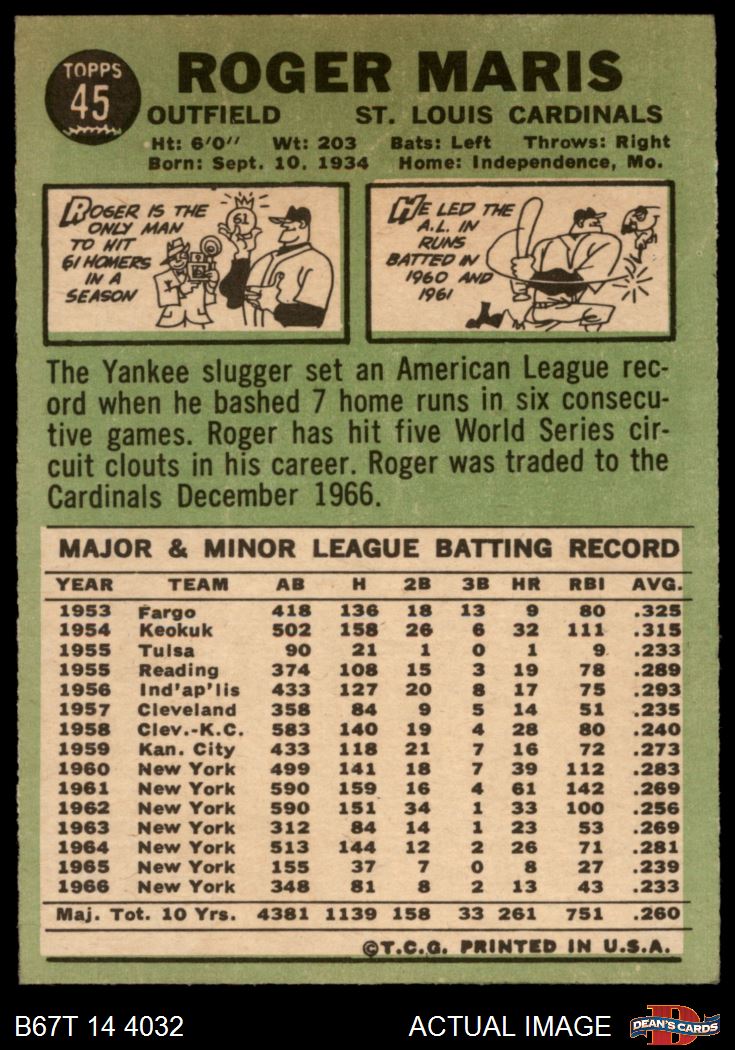1967 Topps #45 STL Roger Maris 6 - EX/MT