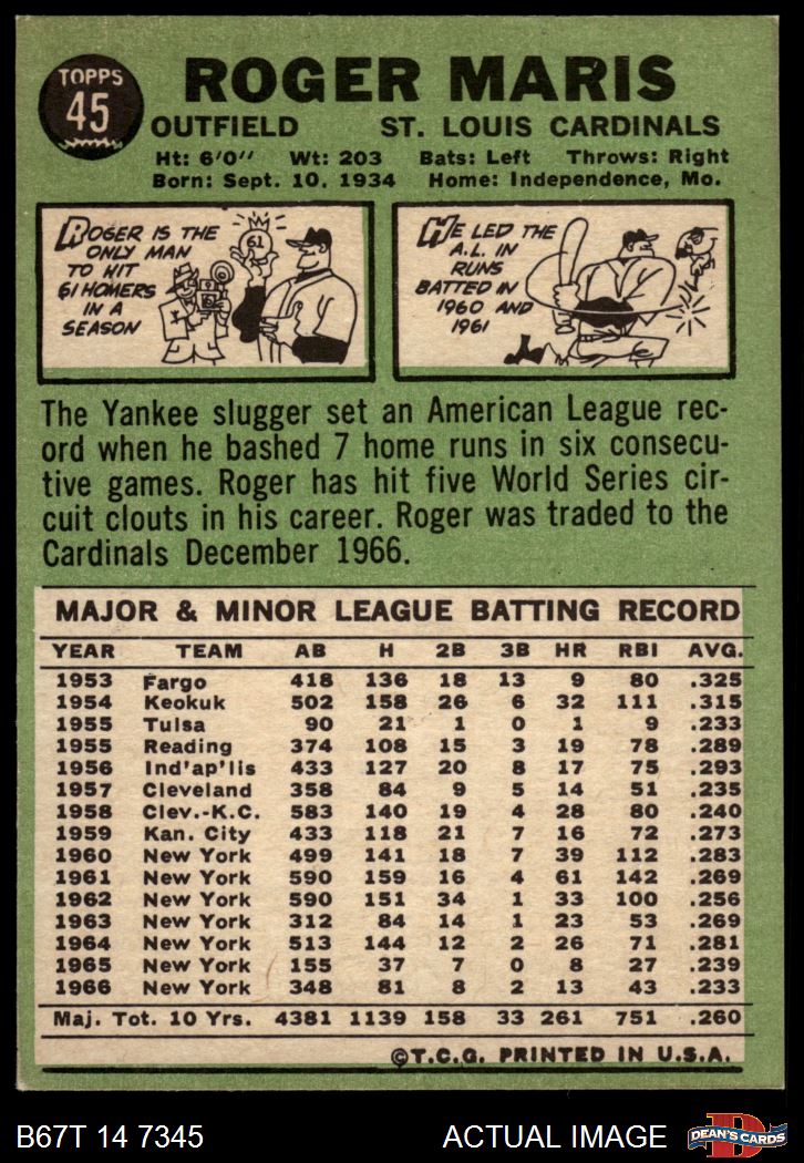 1967 Topps #45 STL Roger Maris 8 - NM/MT