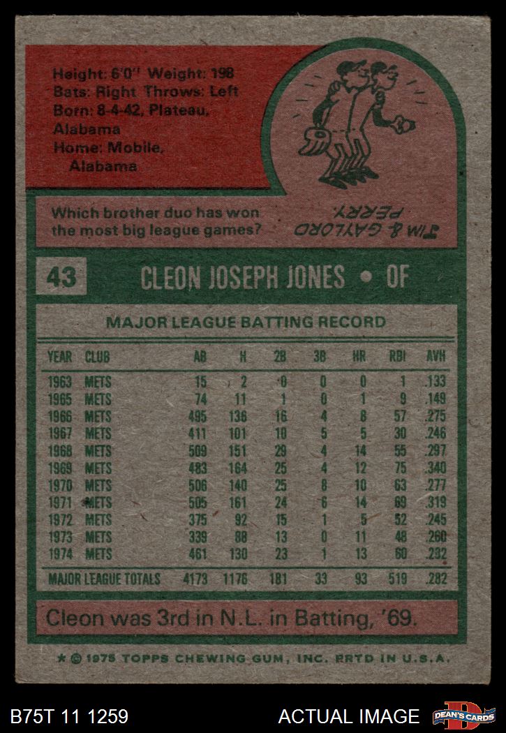 1975 Topps #43 Cleon Jones 4 - VG/EX