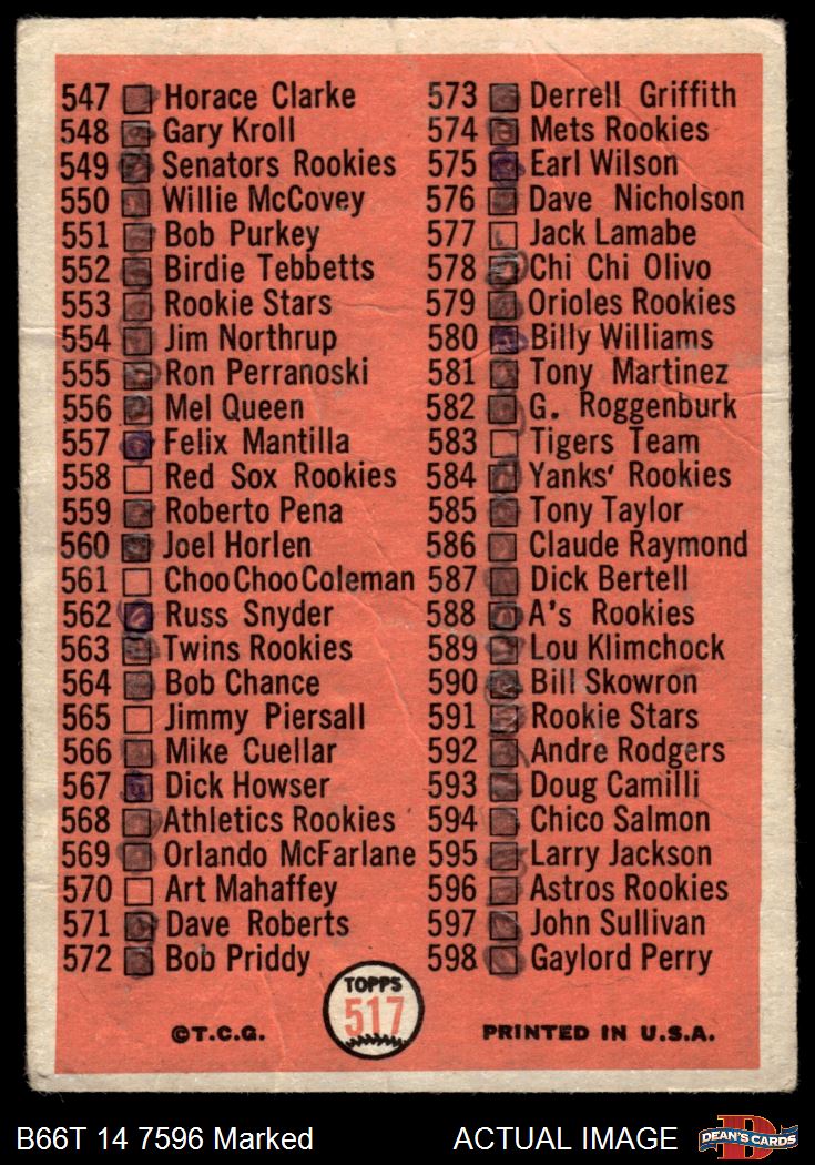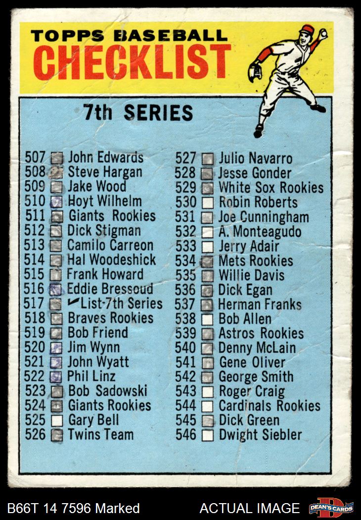 1966 Topps #517 WHT Checklist 7 AUTHENTIC