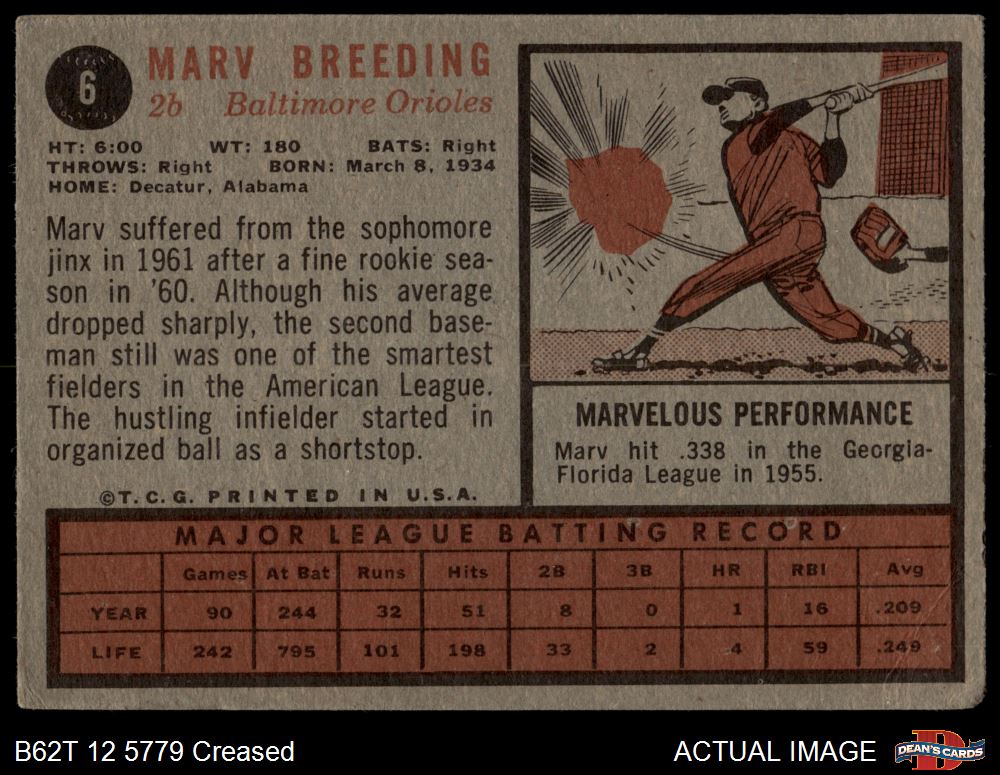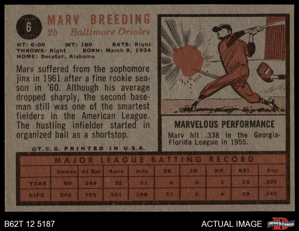 1962 Topps #6 Marv Breeding