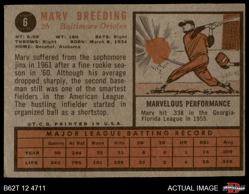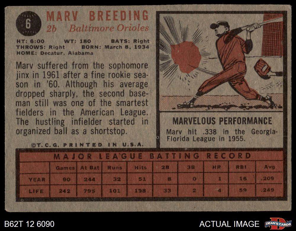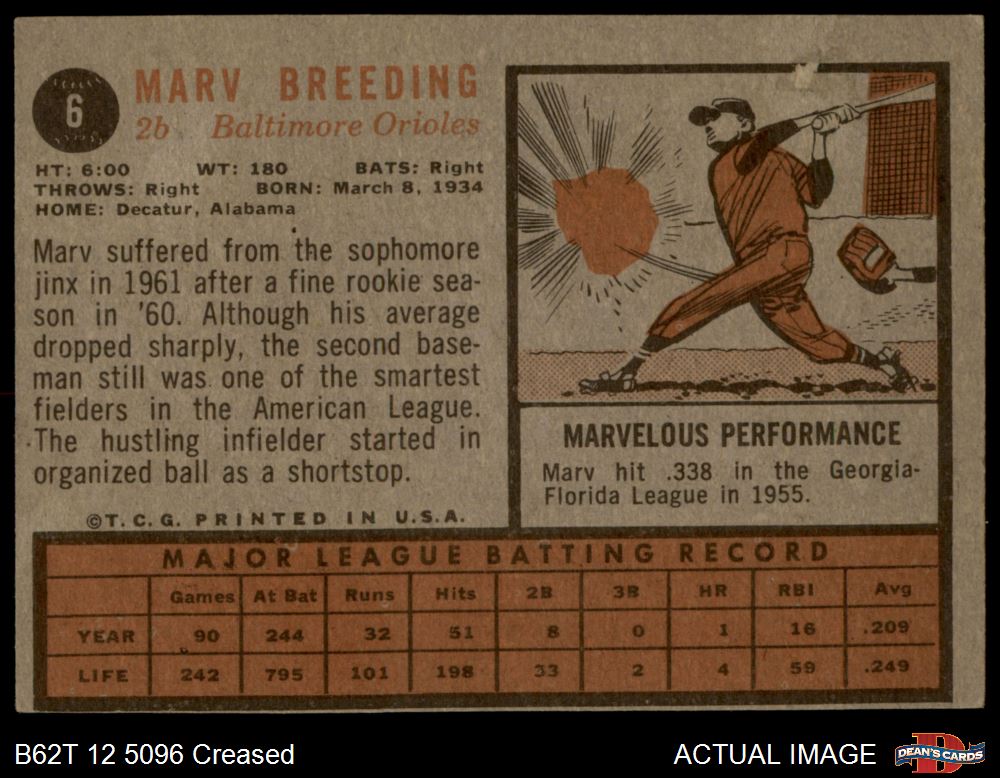 1962 Topps #6 Marv Breeding 2 - GOOD