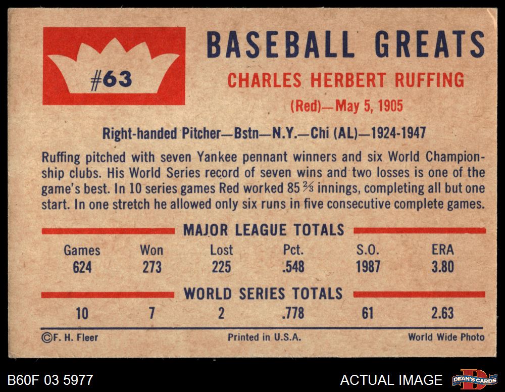 1960 Fleer #63 Red Ruffing 2 - GOOD