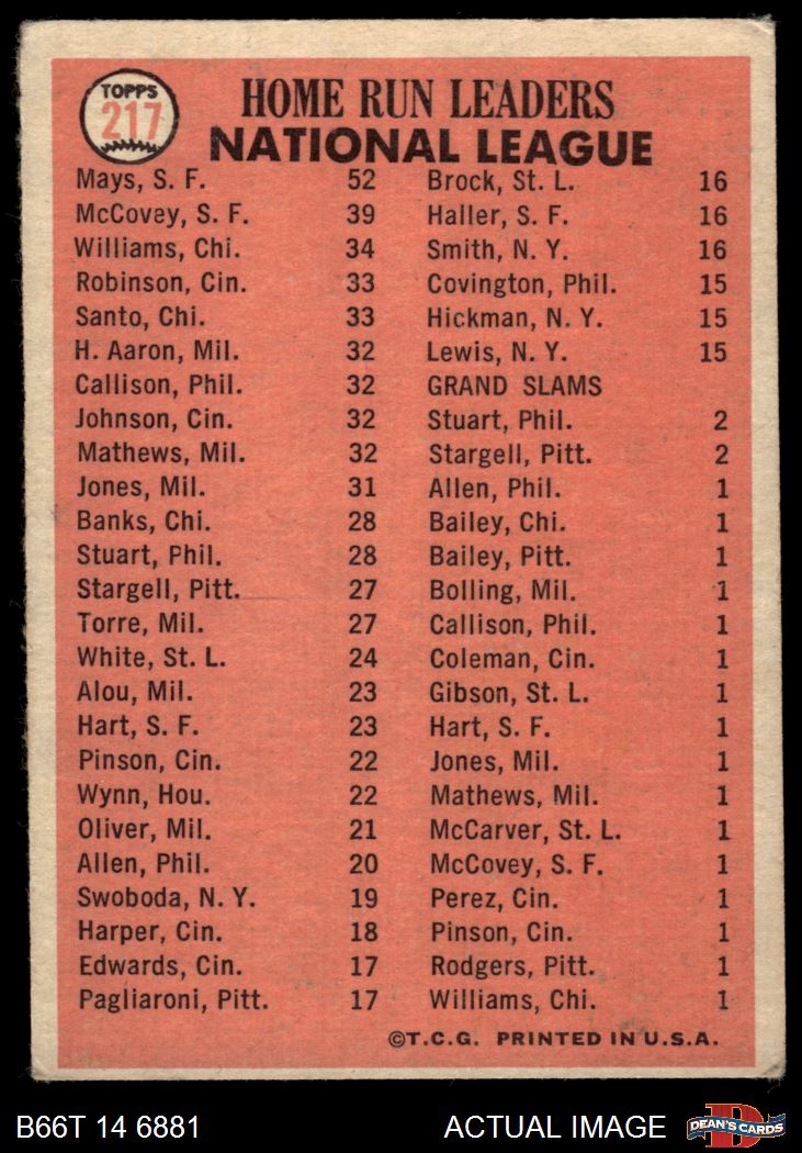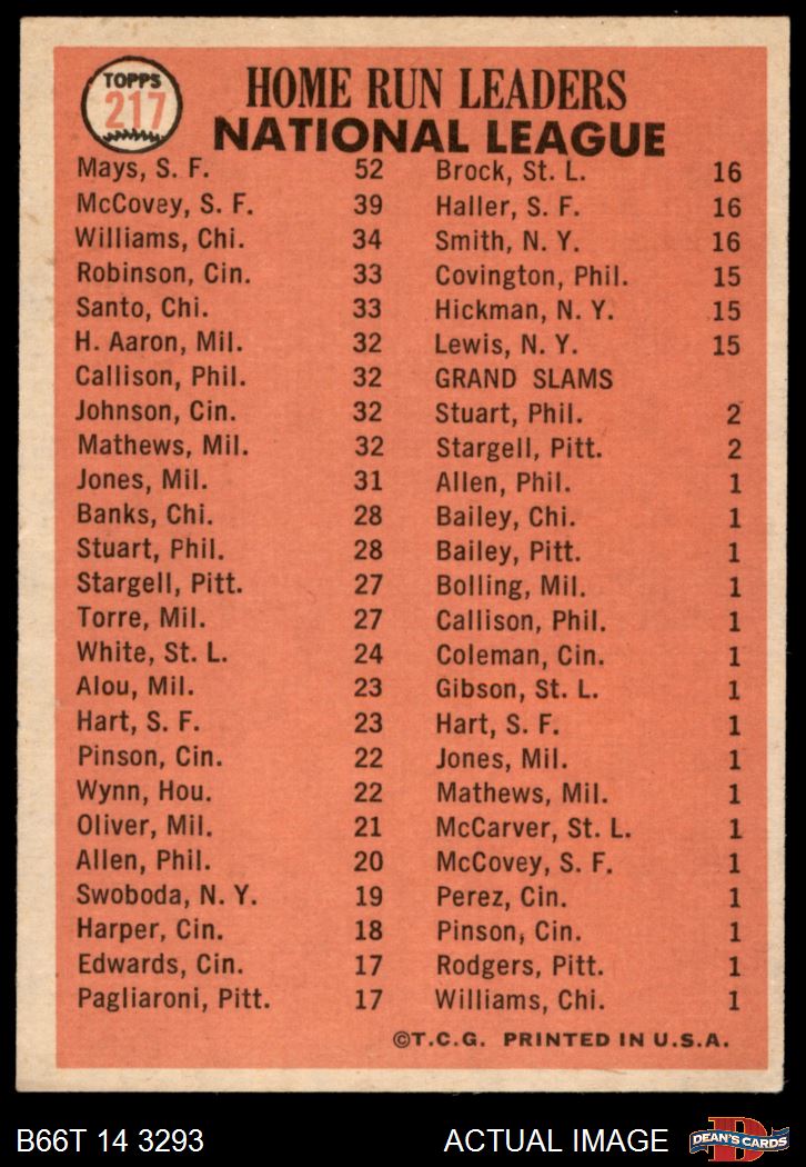 1966 Topps #217 NL HR Leaders