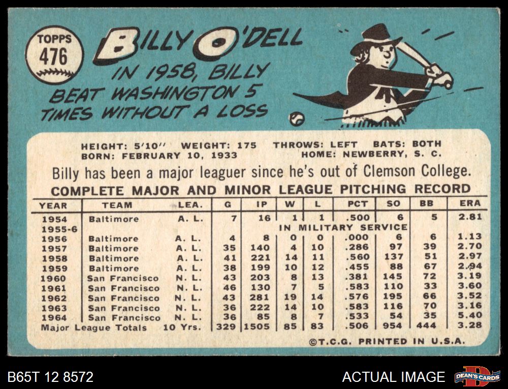 1965 Topps #476 Billy O'Dell Front Thumbnail