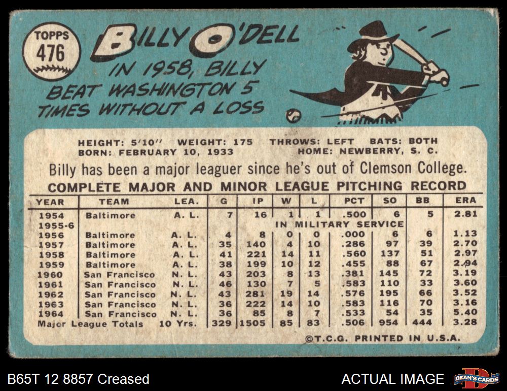 1965 Topps #476 Billy O'Dell 2 - GOOD