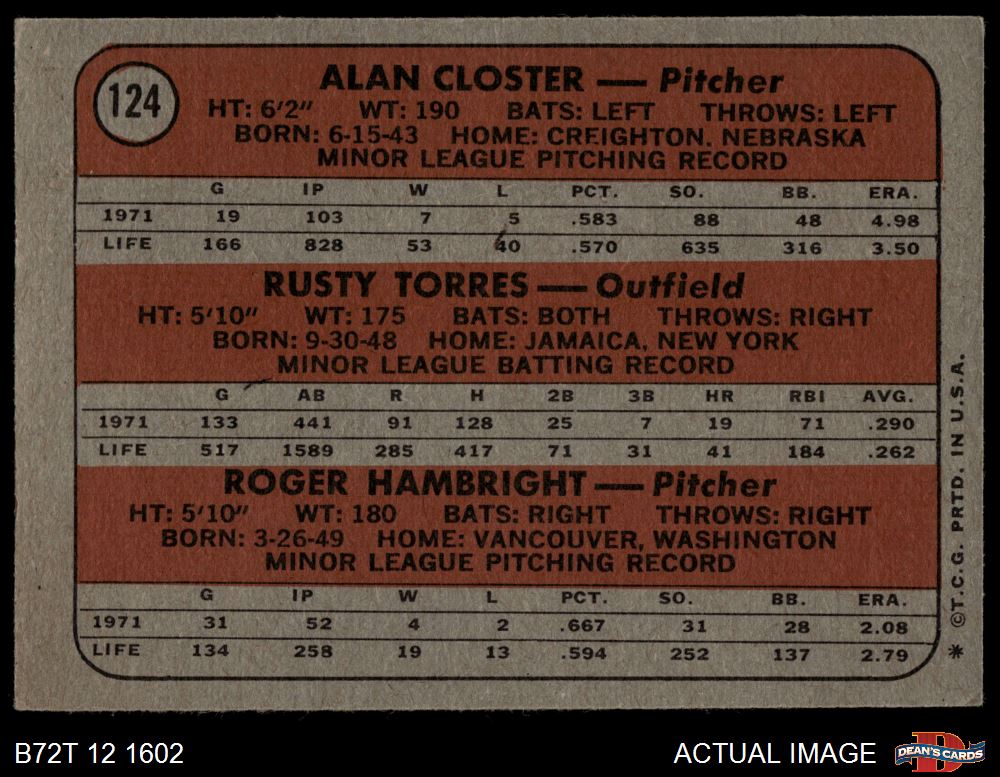 Alan Closter / Roger Hambright / Rusty Torres (54 available)
