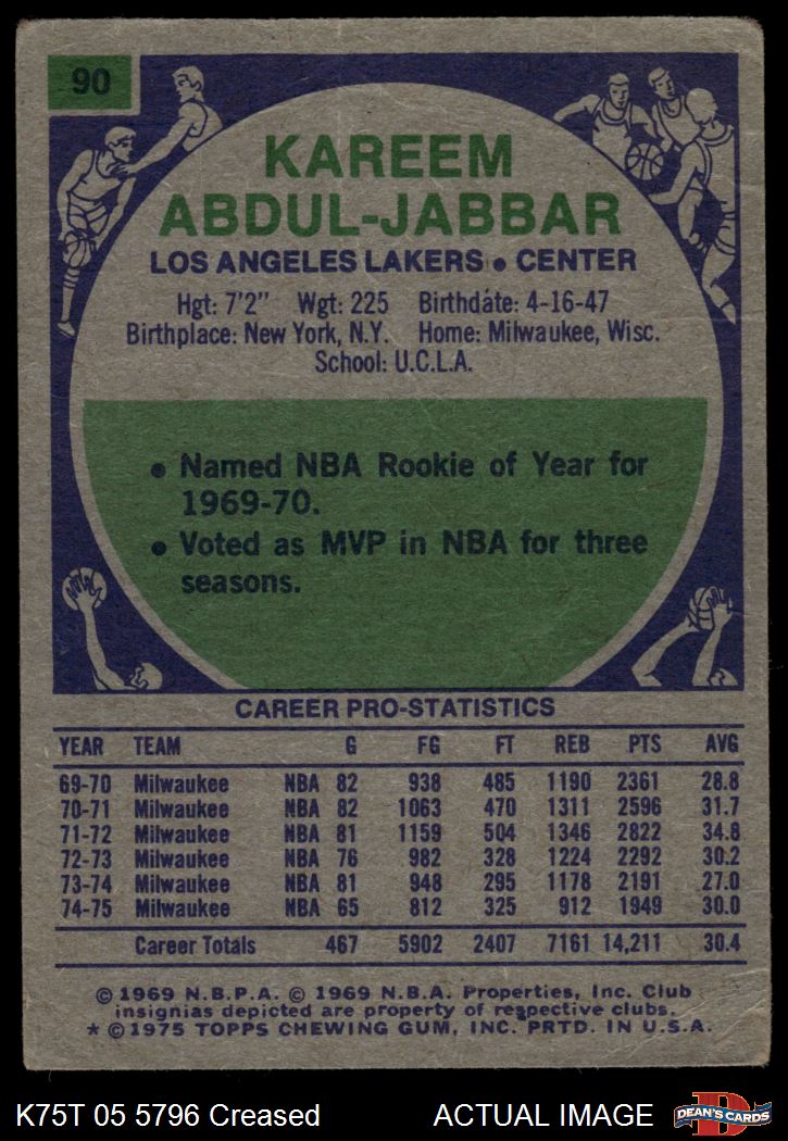 1975 Topps #90 Kareem Abdul-Jabbar 2.5 - GD+