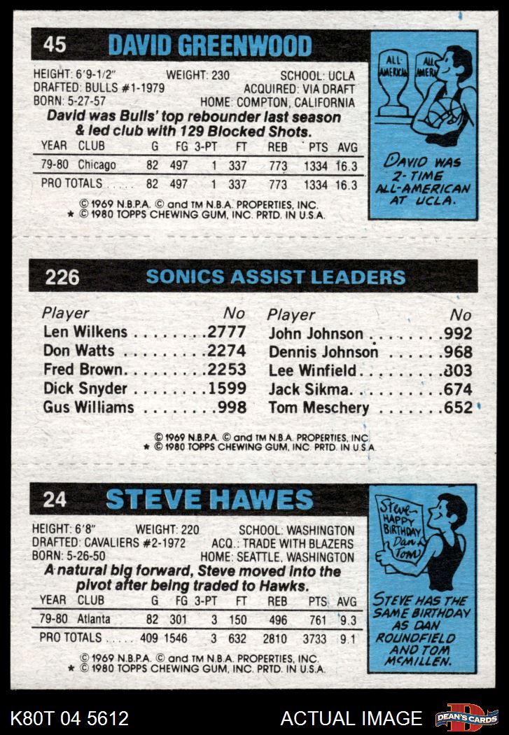 1980 Topps - Steve Hawes / John Johnson / David Greenwood 24 / 226 / 45 3 - VG