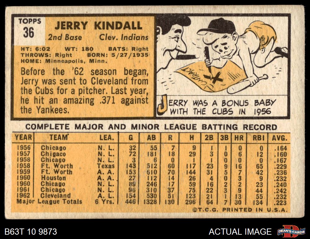1963 Topps #36 Jerry Kindall