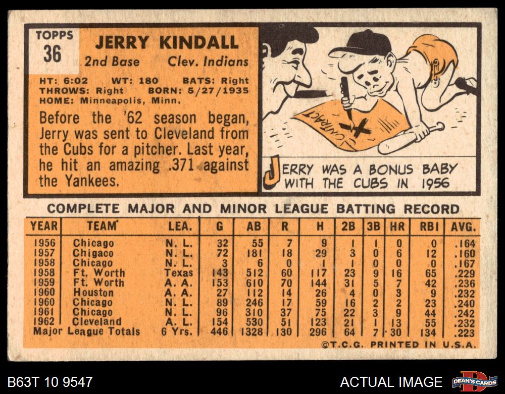 1963 Topps #36 Jerry Kindall 4 - VG/EX