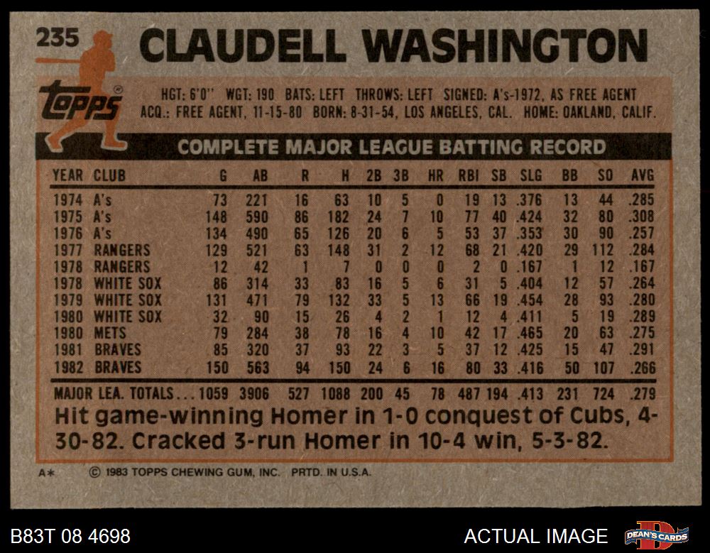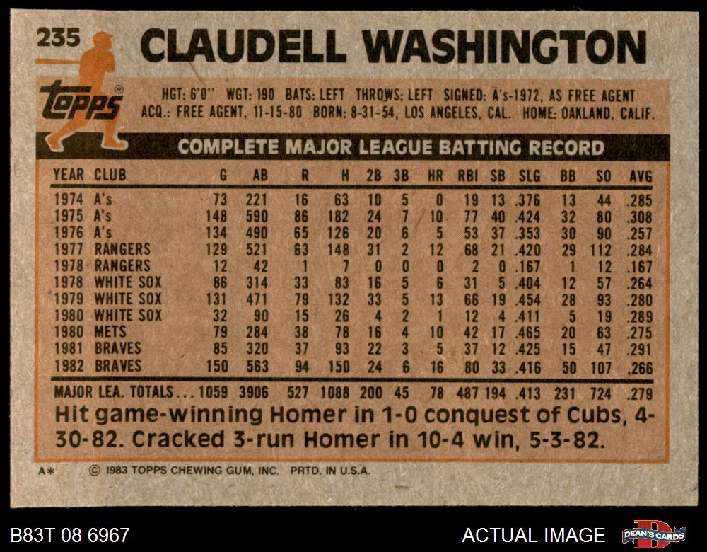 1983 Topps #235 Claudell Washington