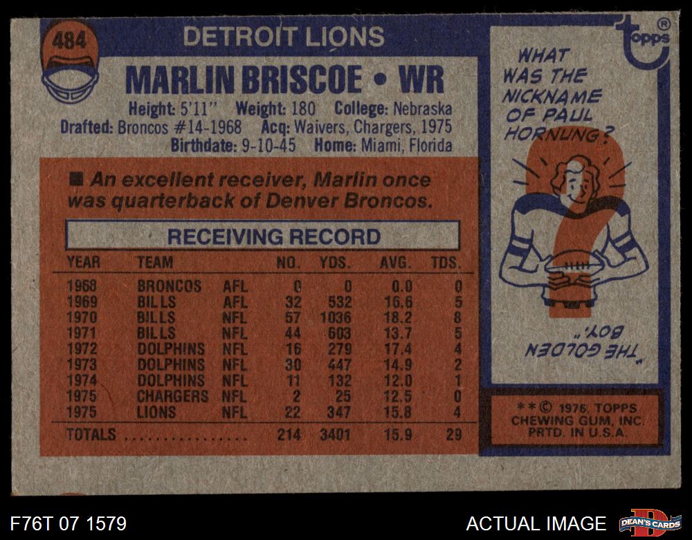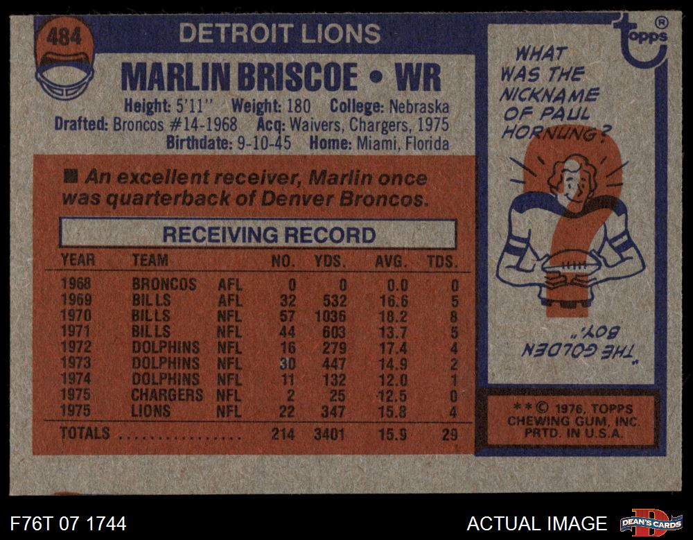 1976 Topps #484 Marlin Briscoe