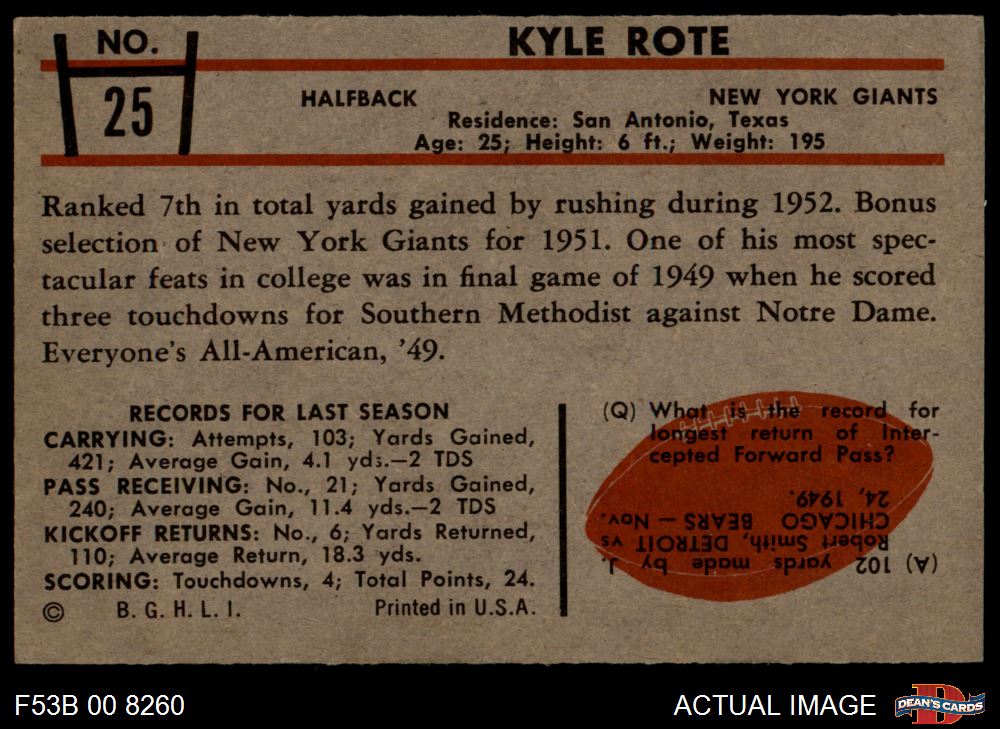 1953 Bowman #25 Kyle Rote