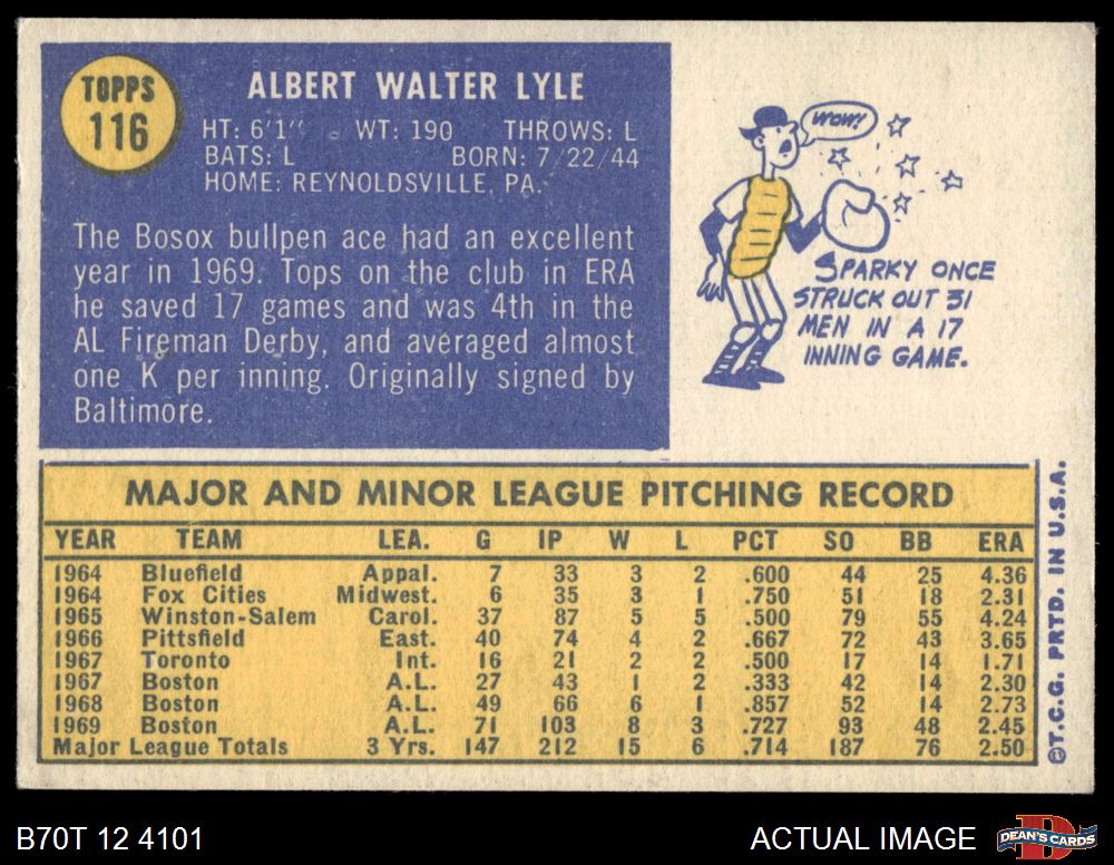 1970 Topps #116 Sparky Lyle 5.5 - EX+
