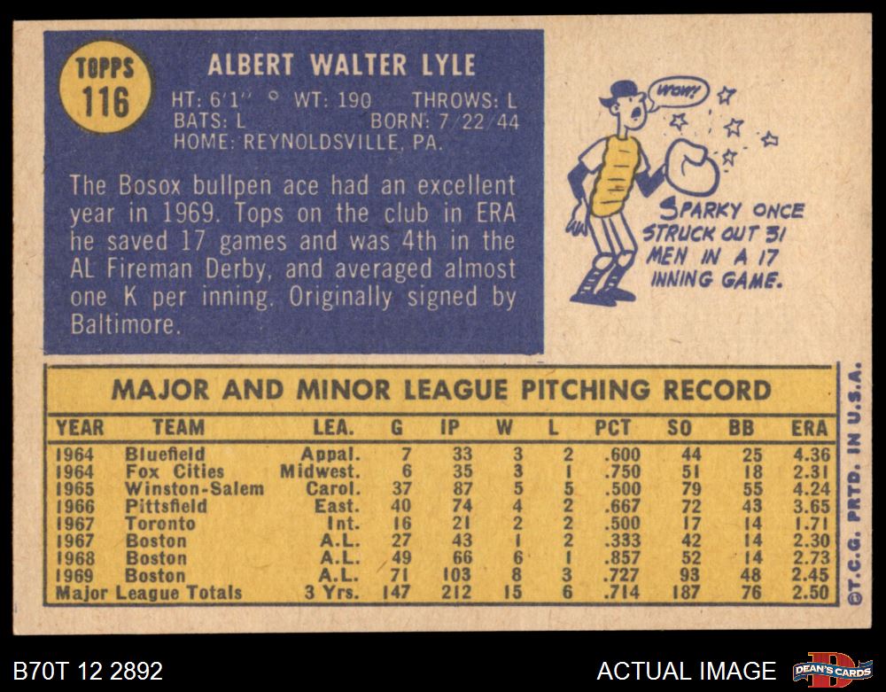 1970 Topps #116 Sparky Lyle 6 - EX/MT