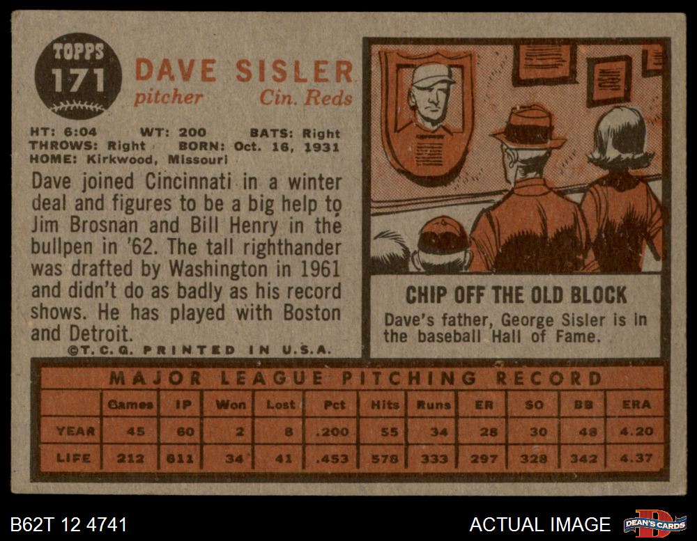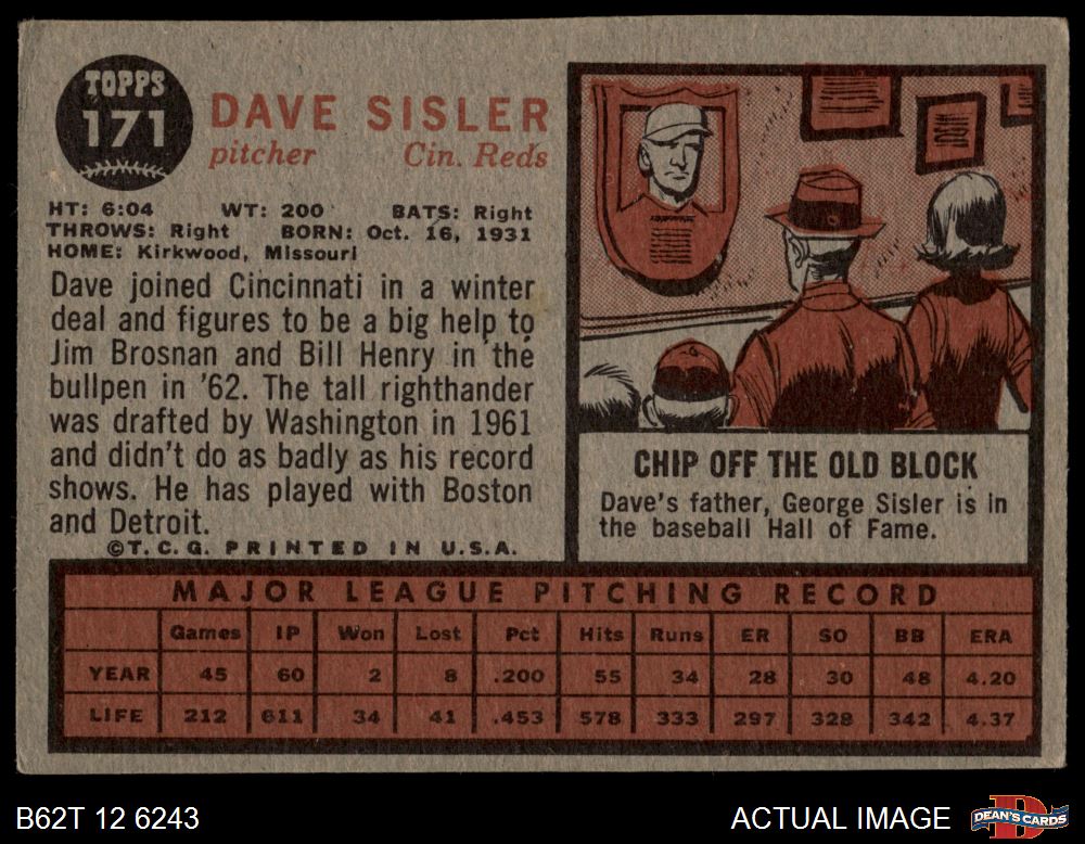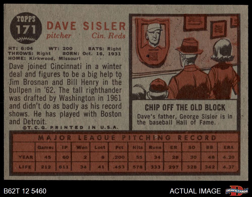 1962 Topps #171 NRM Dave Sisler