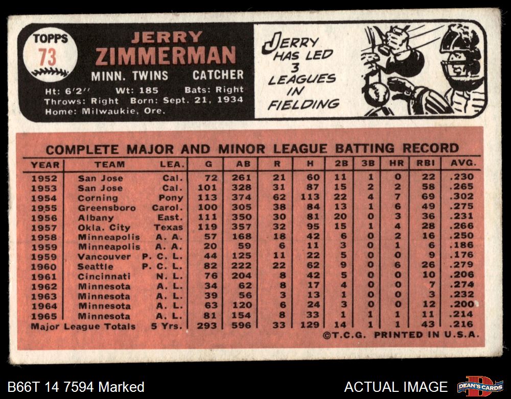 1966 Topps #73 xSTR Jerry Zimmerman 1.5 - FAIR