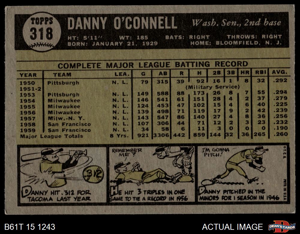 1961 Topps #318 Danny O'Connell 4 - VG/EX