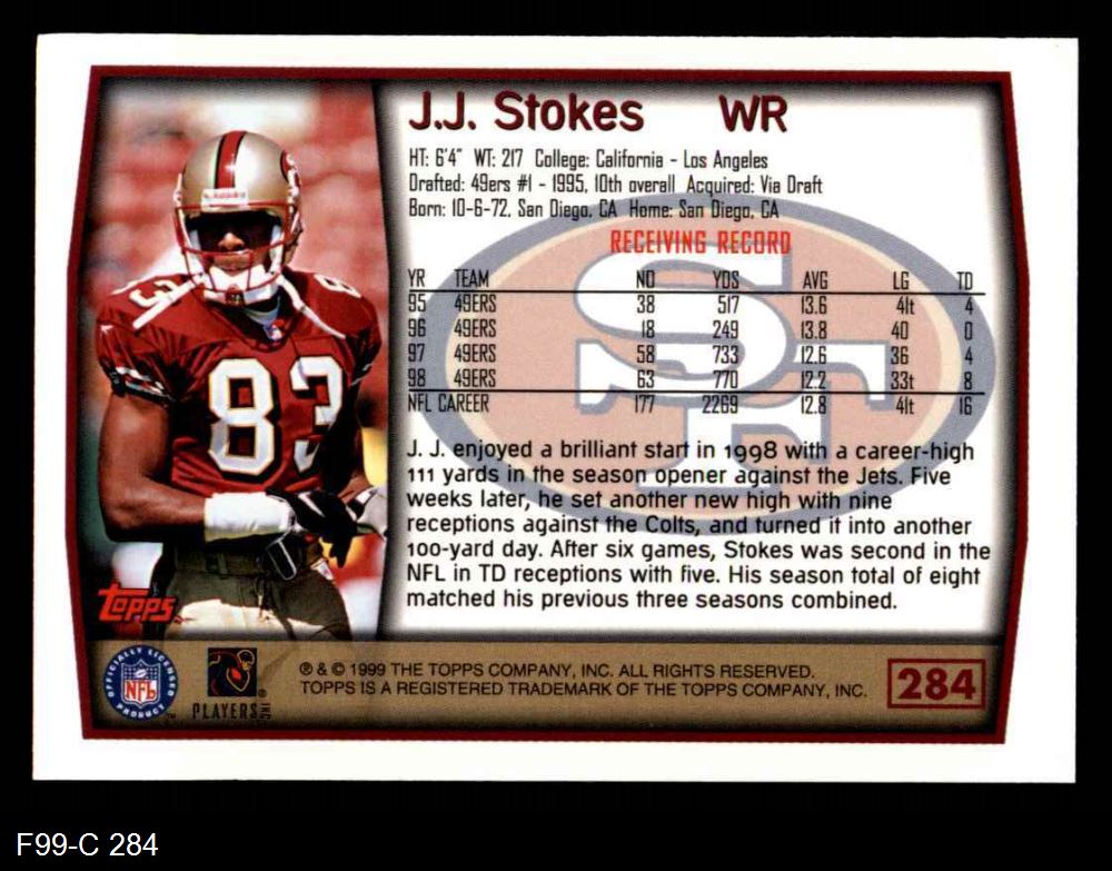 1999 Topps #284 J.J. Stokes 8 - NM/MT