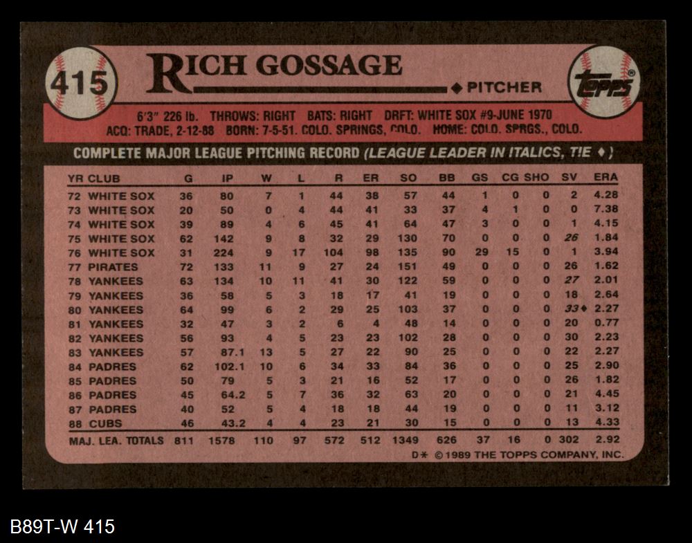 1989 Topps #415 Goose Gossage 8 - NM/MT