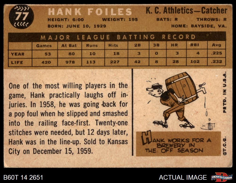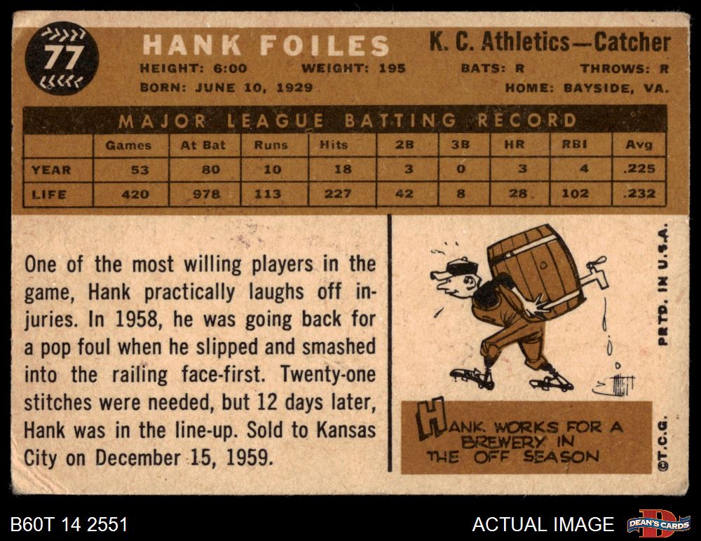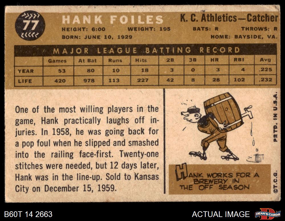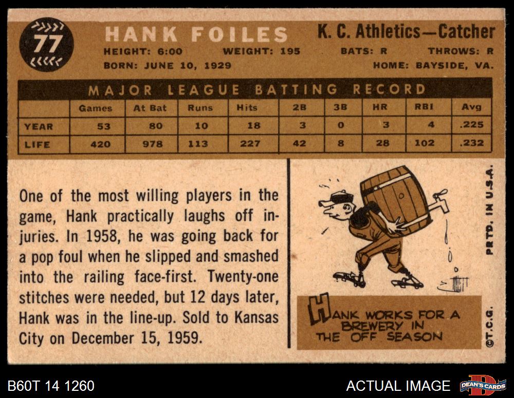 1960 Topps #77 Hank Foiles